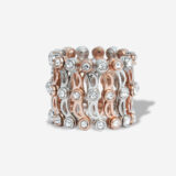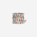 A masterpiece of versatility, this dual-purpose jewelry piece is both a wide statement ring and an adjustable kada bracelet. Crafted in 925 sterling silver with luxurious rhodium and rose gold plating, it features a rhythmic arrangement of bezel-set sparkling stones for a contemporary-meets-royal aesthetic. Whether worn on your finger or around your wrist, it transforms seamlessly to elevate your look be it for daily wear or a grand occasion.