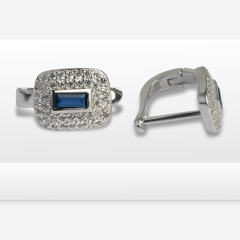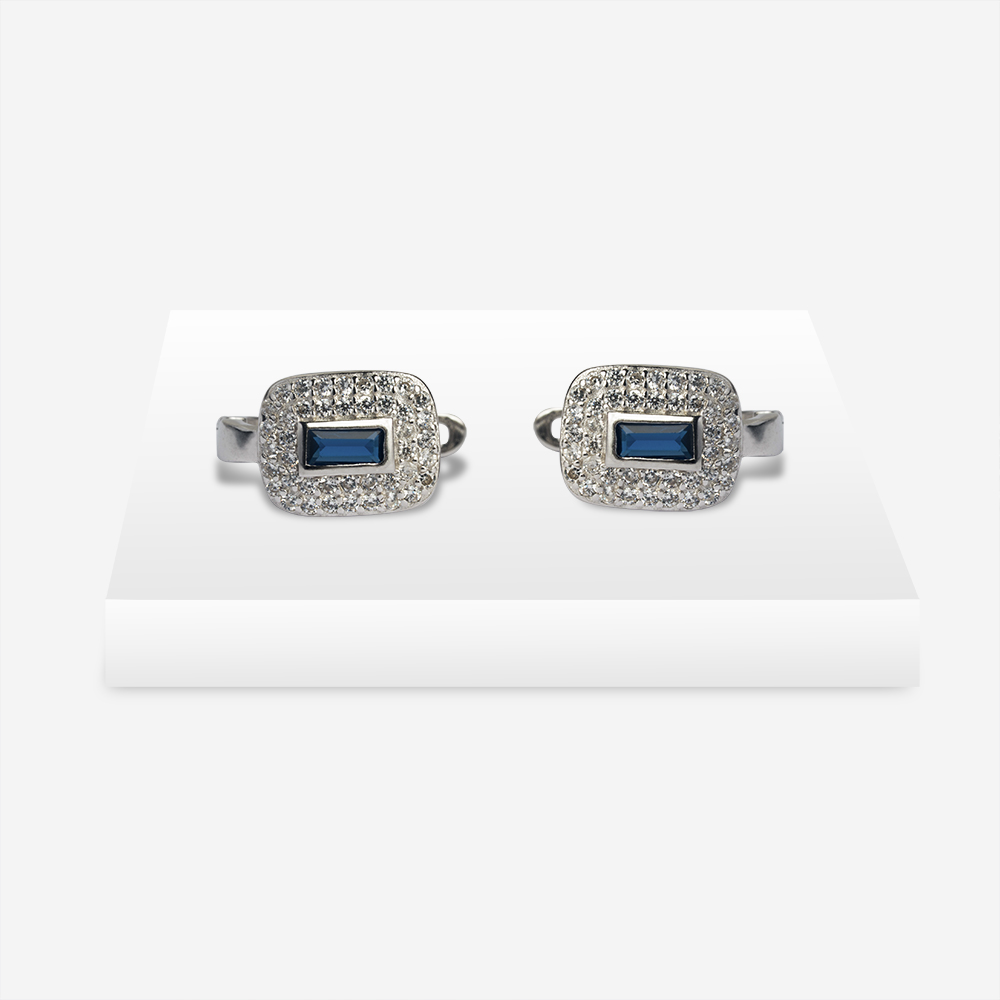 Elevate your elegance with the Blue Luxe Cushion Hoops, adorned with a rectangular blue gemstone framed in a cushion of sparkling white crystals. A timeless blend of color and brilliance.