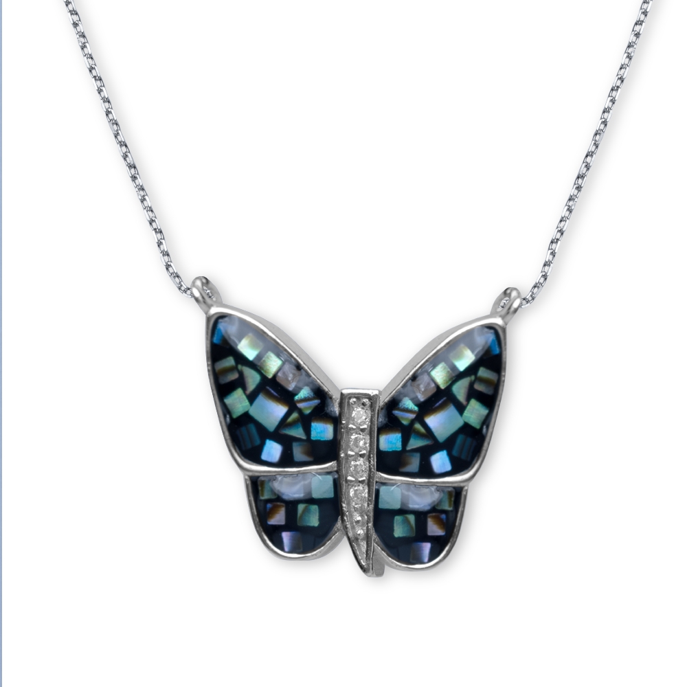 Let your style take flight with the Mystic Wings Butterfly Necklace. Featuring intricately designed wings in shimmering mosaic hues, this silver necklace embodies transformation, elegance, and inner beauty. The butterfly motif, adorned with sparkling stones along its body, evokes the magic of nature and freedom. Set in 925 sterling silver, this necklace is an exquisite blend of artistry and symbolism. It’s perfect for women who embrace change and radiate grace. Whether worn solo or layered, this piece elevates everyday outfits and special occasions alike. A conversation starter and a collector’s delight, it’s designed to stay timeless. The fine detailing and light-reflecting surfaces ensure you dazzle from every angle. A true keepsake of your evolving self.