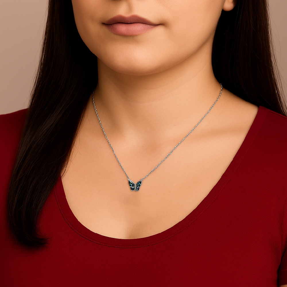 Let your spirit take flight with the Mystic Wings Butterfly Necklace. Crafted in 925 sterling silver, this elegant piece features delicate butterfly motifs symbolizing freedom and transformation perfect for day-to-night effortless charm