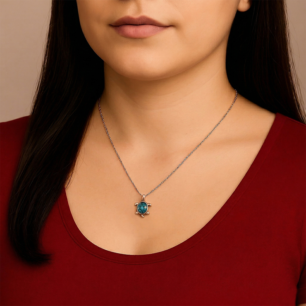 - Crafted in high-polish silver, the pendant features a graceful turtle design, representing longevity, strength, and calmness.